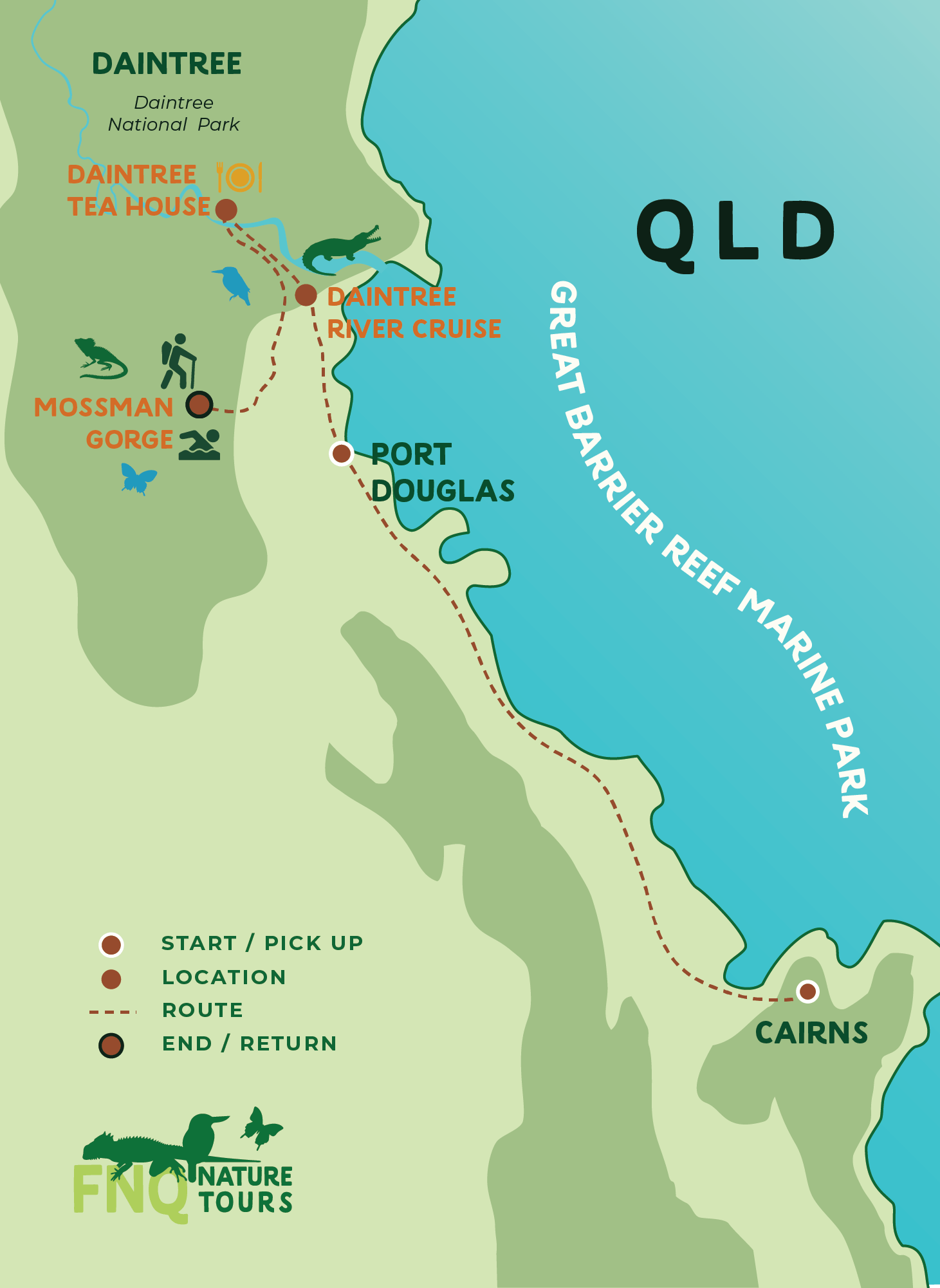 Witness the magical Great Barrier Reef Drive as we head north on the scenic coastal highway. Learn about the unique habitats within the local environment and observe the changes in bio-diversity as we get closer to the Daintree Tropical Rainforest.